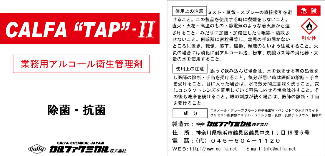 アルコール 除菌スプレー 詰め替え用インフルエンザ 対策 消毒液 ウイルス対策【送料無料】【カルファタップ-2】ノロ除菌 業務用 20リットル