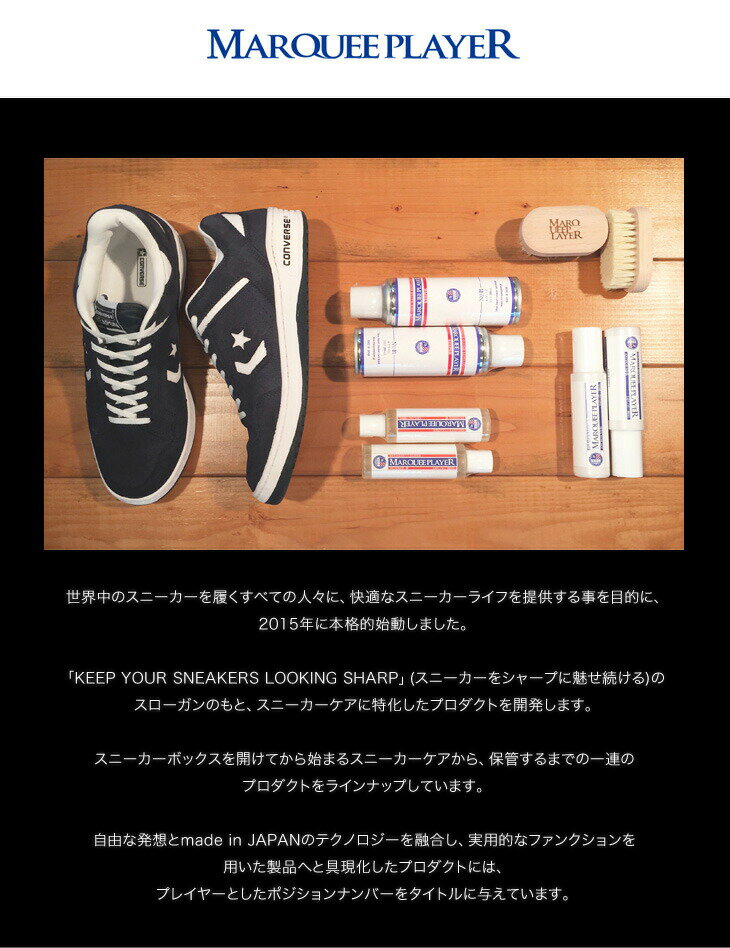 TOP MARQUEE PLAYER(マーキープレイヤー) 世界中のスニーカーを履くすべての人々に、快適なスニーカーライフを提供する事を目的に、2015年に本格的始動しました。