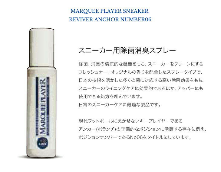 MARQUEE PLAYER(マーキープレイヤー) スニーカーリバイバーアンカー / 消臭スプレー / 除菌 / スニーカーケア / SNEAKER REVIVER NUMBER 6 / 日本製