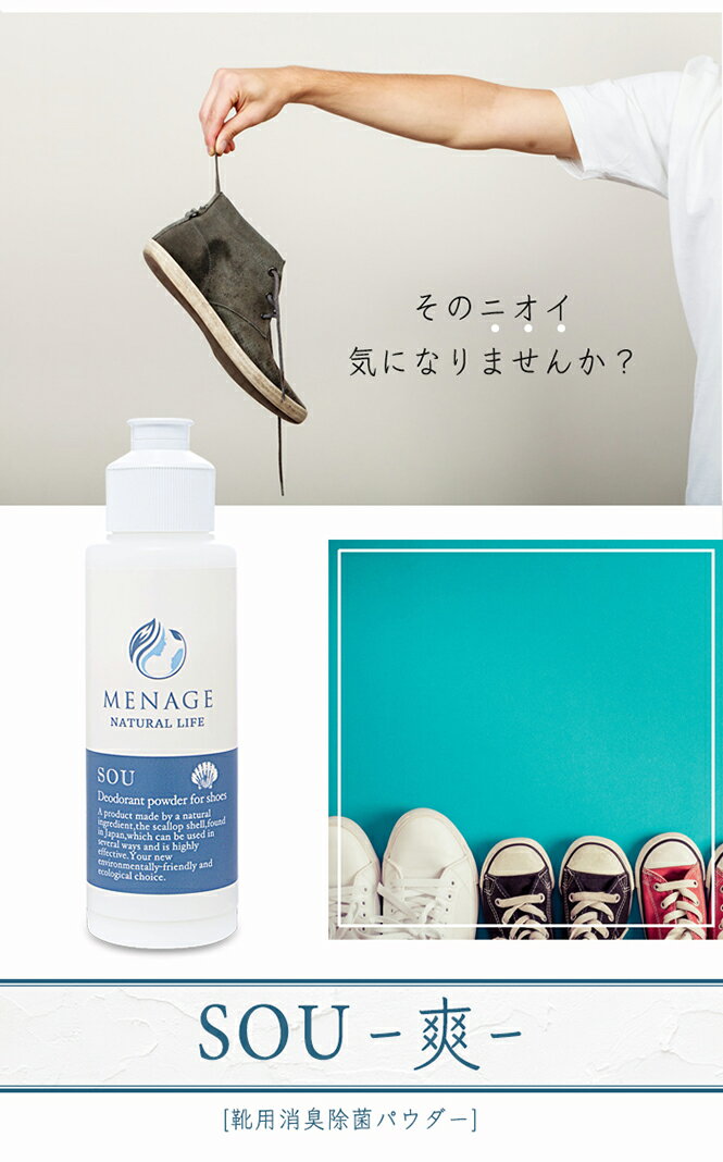 【 20PP 】 靴のにおい消しパウダー MENAGE NATURAL LIFE メナージュナチュラルライフ 爽 SOU ホタテの貝殻 靴 除菌 消臭 清潔 嫌なニオイ対策 日本製